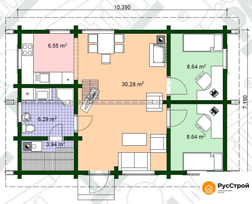Дом из бревна с мансардным этажом и четырьмя спальнями SD-277