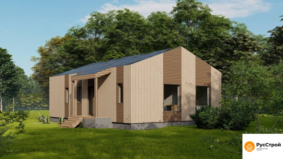 Дом каркасный серии "Барне" — это одноэтажный каркасный дом площадью 80 кв.м с уютной террасой, построенный по современной технологии. Габариты 11 x 9 м обеспечивают просторную планировку и возможность создания комфортного жилого пространства.