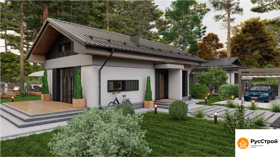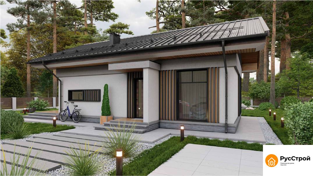 Несмотря на компактную площадь, дом предоставляет все необходимое для комфортной жизни. Одноэтажная планировка удобна в эксплуатации и подходит для людей любого возраста. Терраса может использоваться как дополнительная гостиная в теплое время года.
