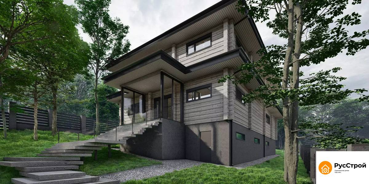 Двухэтажный дом из бруса с 4 спальнями
