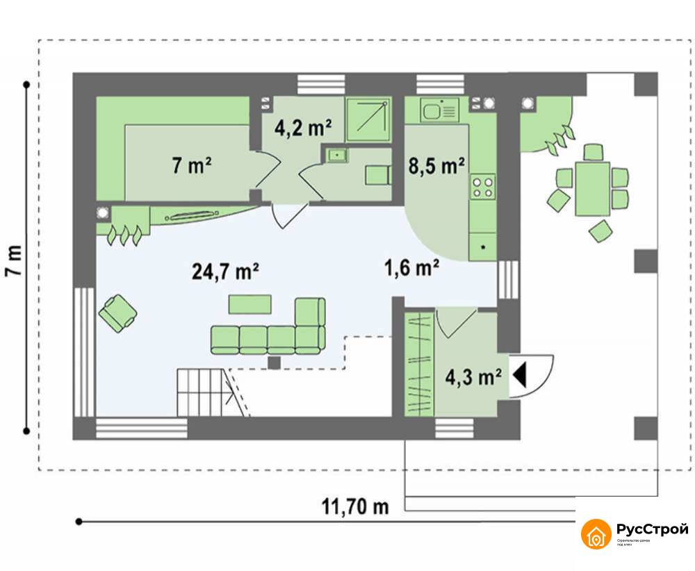 Одноэтажный дом на ленточном фундаменте