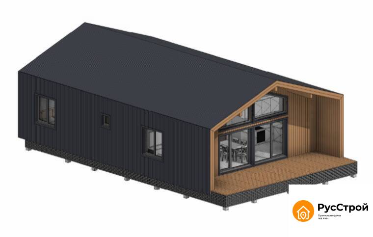 Индивидуальный каркасный дом KD-112 — это просторный одноэтажный дом площадью 116 кв.м из СИП-панелей с террасой. Габариты 9,0 x 15,0 м создают прямоугольную планировку, идеально подходящую для комфортного размещения большой семьи.
