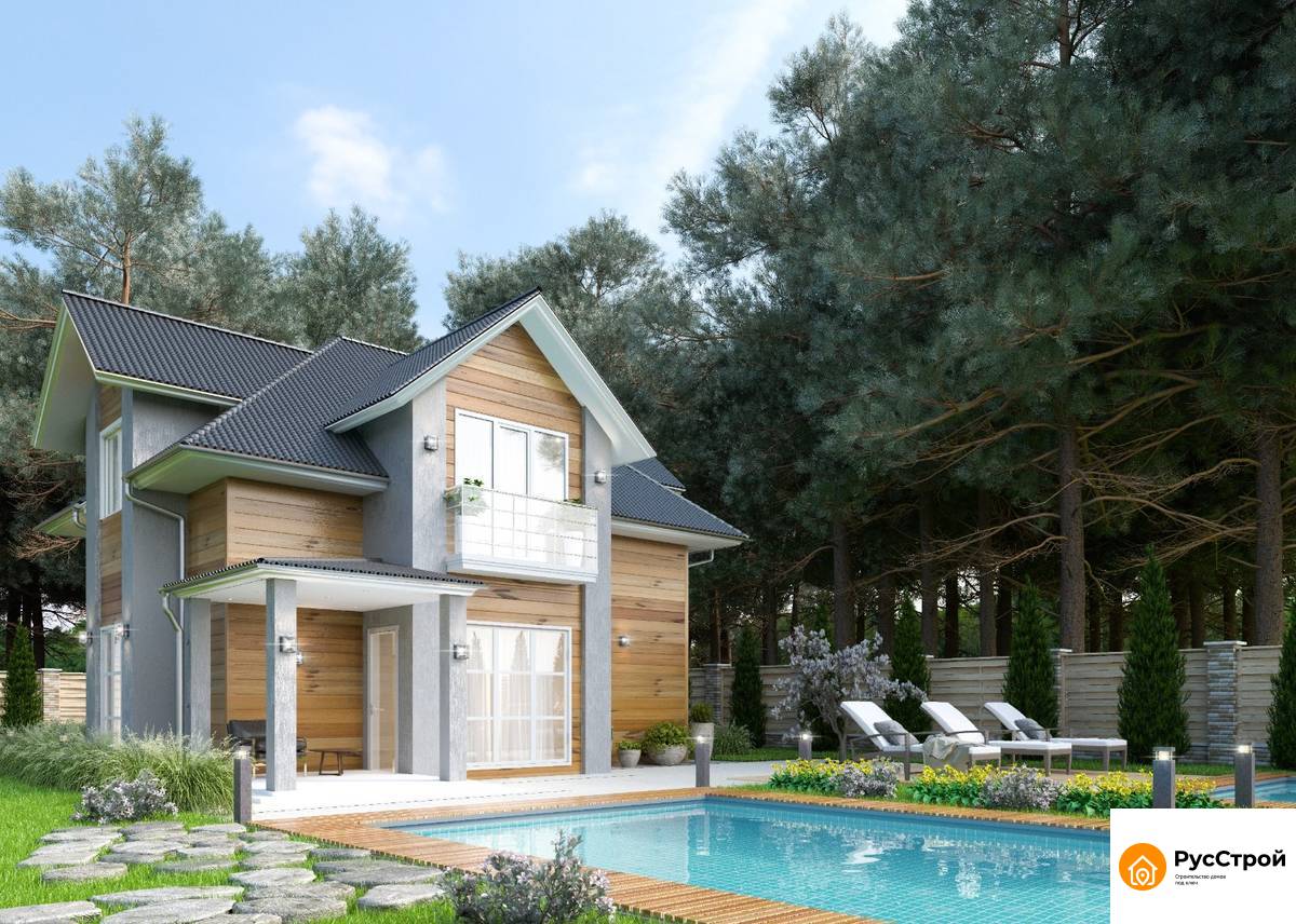 Современный коттедж из газобетона с облицовкой