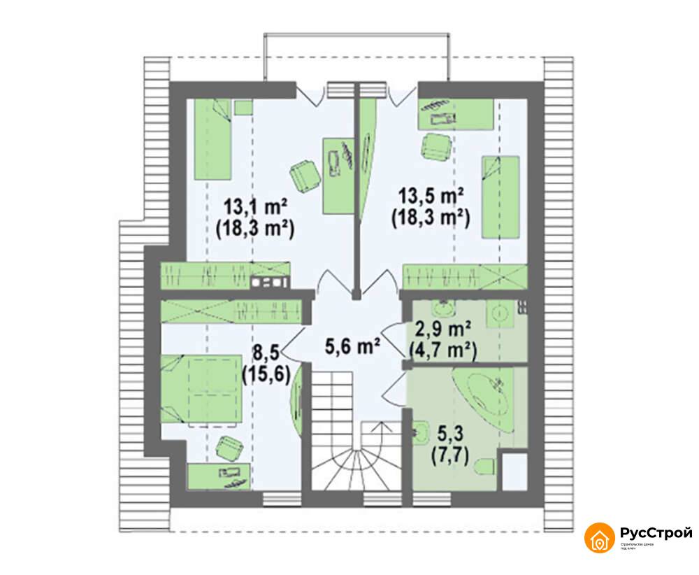 Компактный мансардный коттедж с фасадом приятного вида SD-100