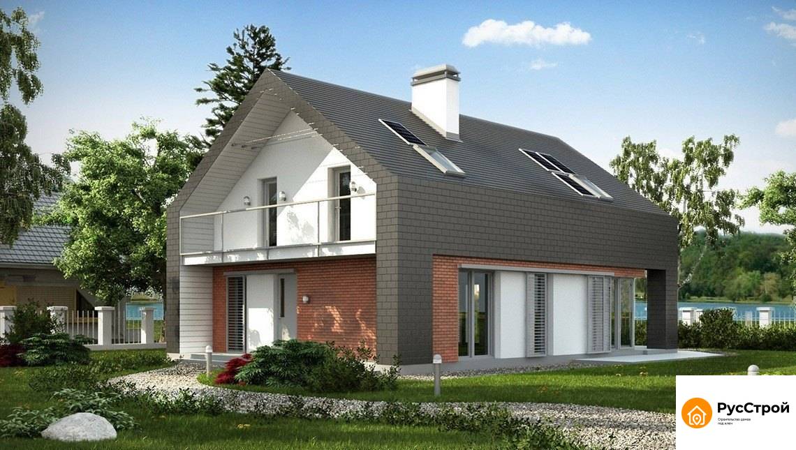 Коттедж с оригинальной мансардой и кирпичным фасадом SD-082