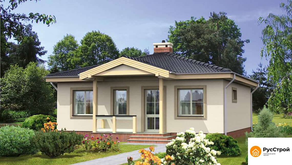 Красивый одноэтажный дом под четырехскатной крышей