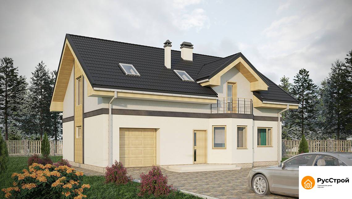 Строгий двухэтажный дом с эркерами и балконами SD-034