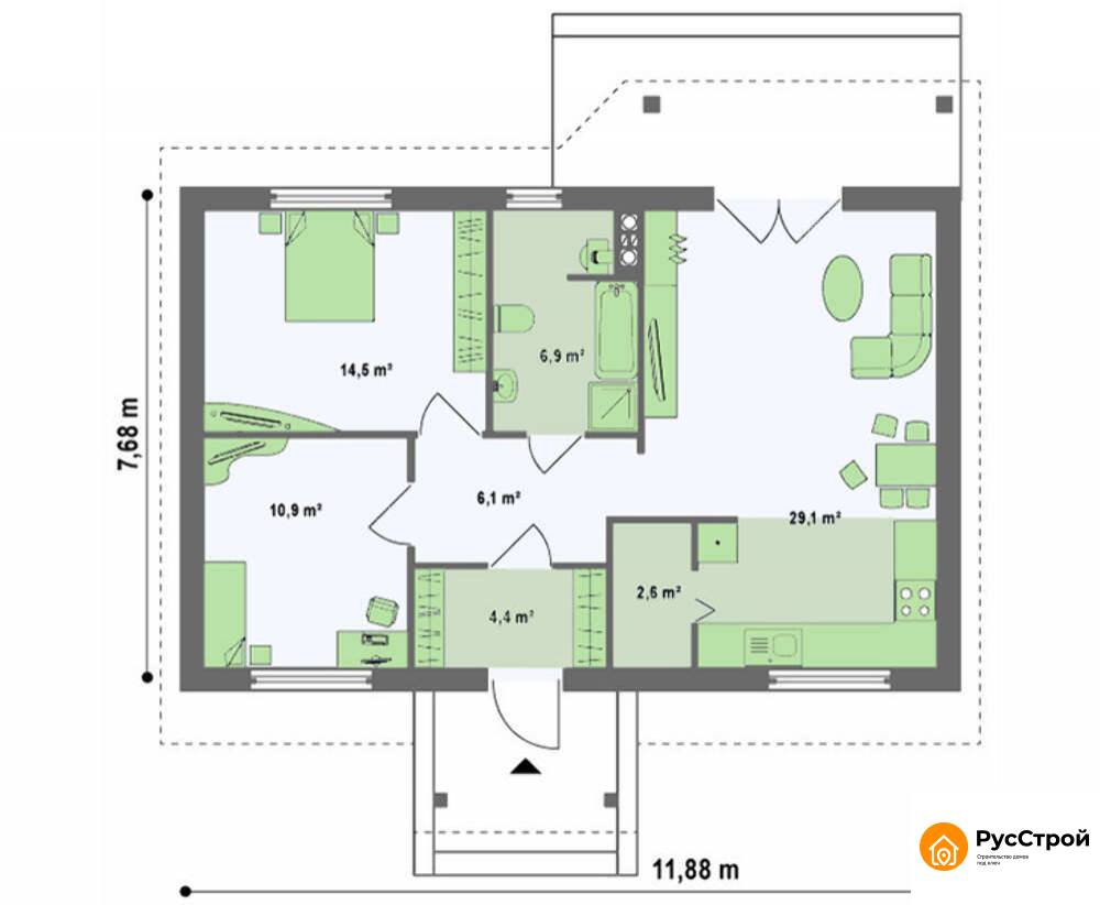Одноэтажный дом на ленточном фундаменте